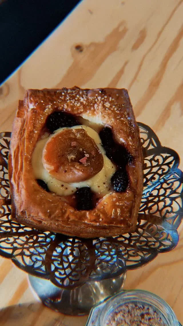 Enjoy a select menu of laminated dough pastry, hearth-baked bread, fruit pies, and a rotating lineup of sweet treats.